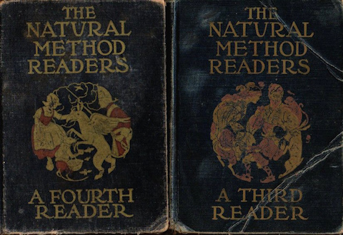 Somewhat more recently, when I was a child, my father gave me two books to read that his parents had given him when he was young: the “Natural Method Readers”, numbers Three and Four, published in 1916 and 1917 respectively. Their purpose was to teach children how to read beyond phonics and word memorization and were intended for children in the 6 to 8 age range. A cursory glance at the table of contents is telling: